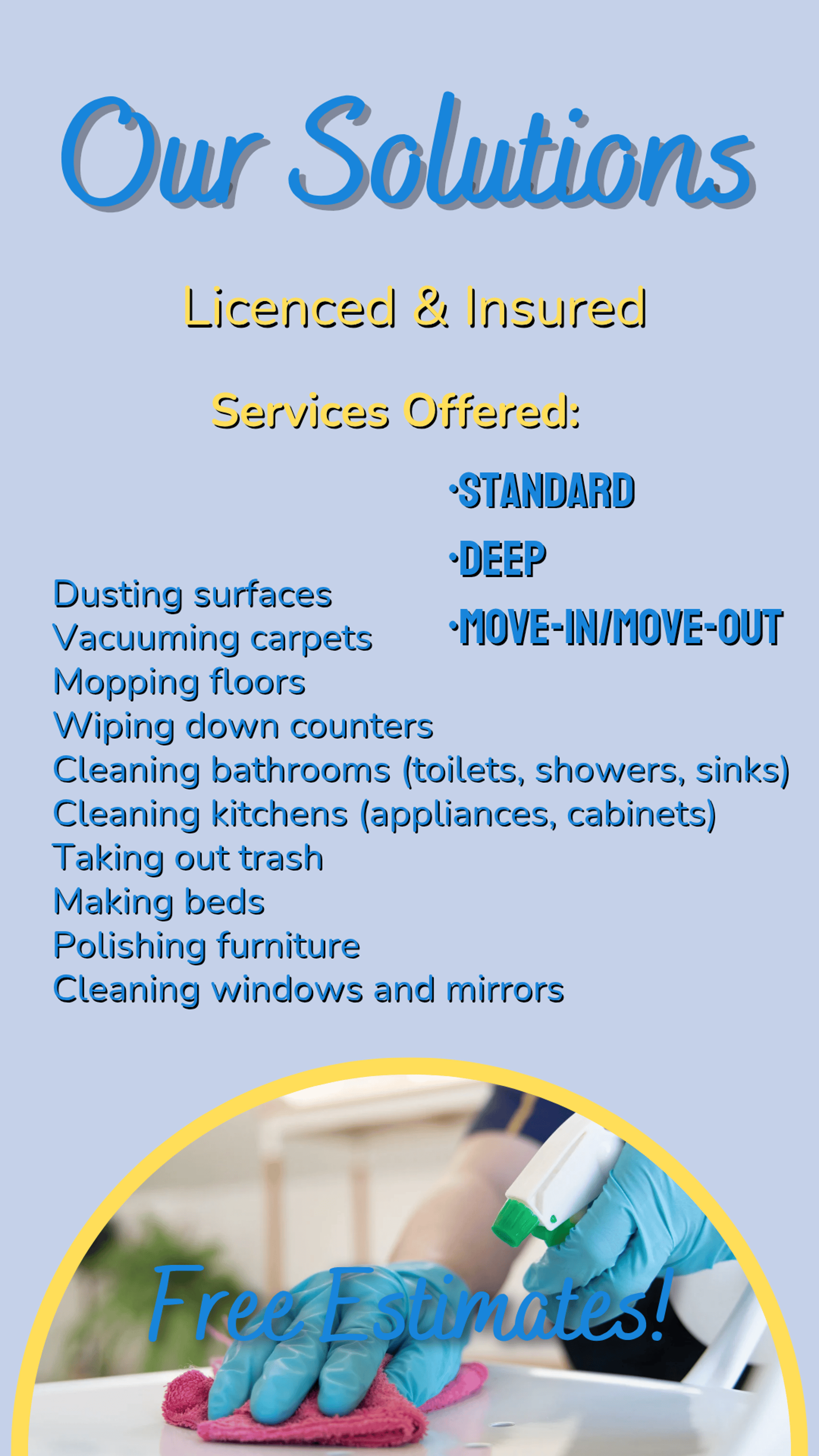 Welcome to Emma's Cleaning, a professional cleaning service dedicated to making your home spotless. We are proud to use high-quality, eco-friendly products that are effective for your home and safe for the environment. We offer a variety of services, from a single deep clean to regularly scheduled cleanings on a weekly or bi-weekly basis..